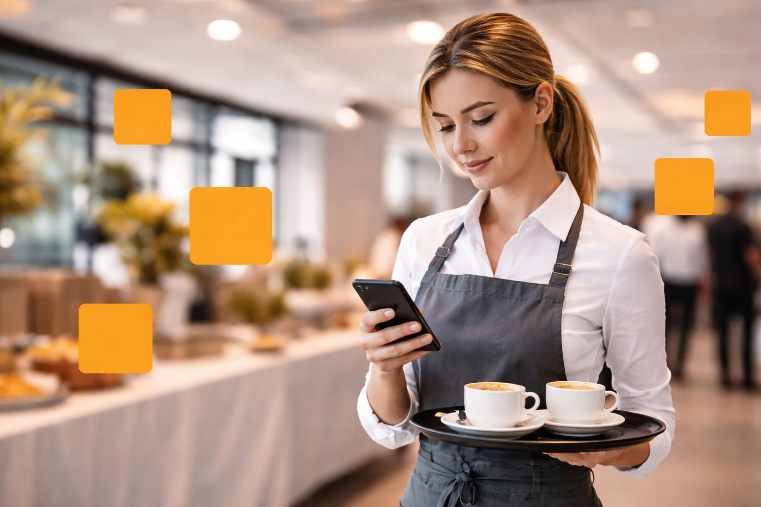 Employees can place orders via smartphone or tablet and have them delivered directly to the desired location.